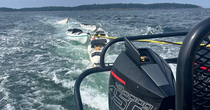 A dozen kayakers, including six children, were rescued by the RCMP Shiprider crew, who came to their aid off the coast of Washington state.