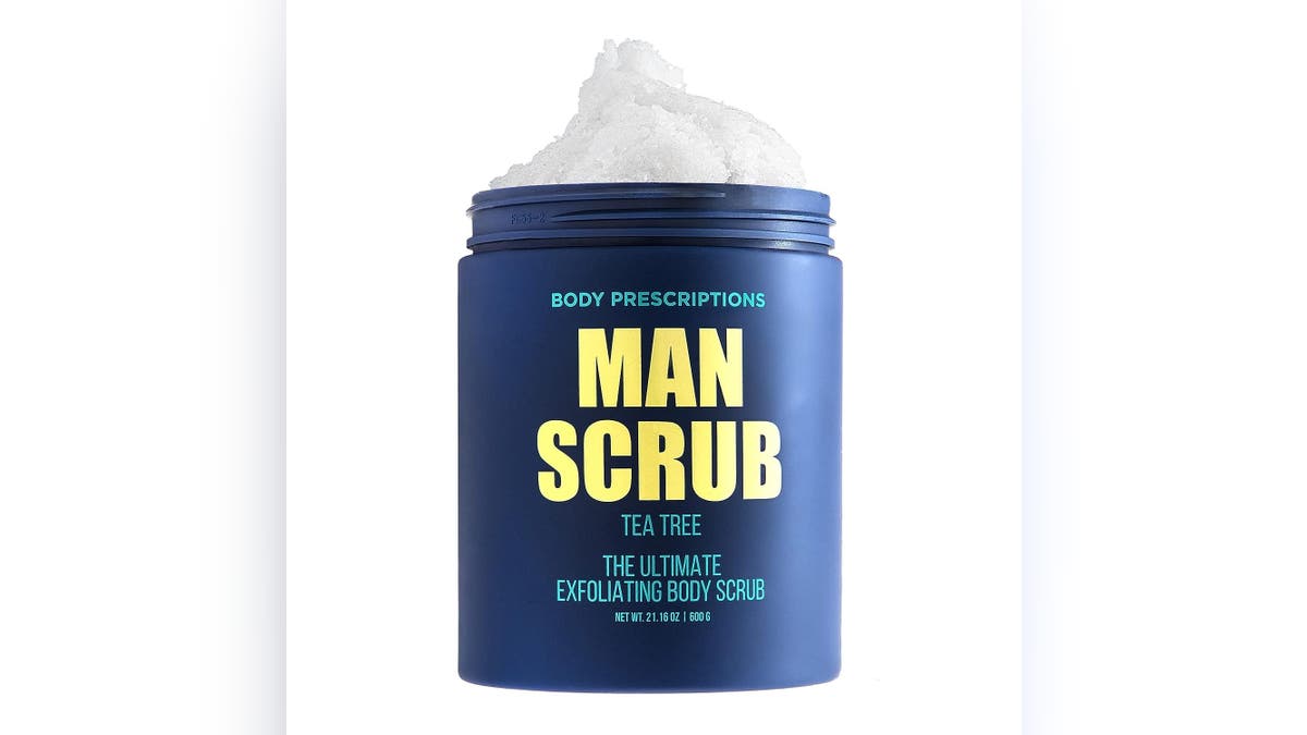 The Body Prescriptions Body Scrub for Men is infused with tea tree oil and can be used on the body, feet, face, hands, and legs. It is antibacterial and cruelty-free. This scrub helps remove old skin cells and promotes healthier and younger-looking skin while locking in moisture all day.Â