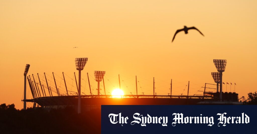 A person watches the sun rise over the MCG ahead of the AFL Grand Final match between Sydney Swans and Brisbane Lions at Melbourne Cricket Ground.Credit:Getty Images