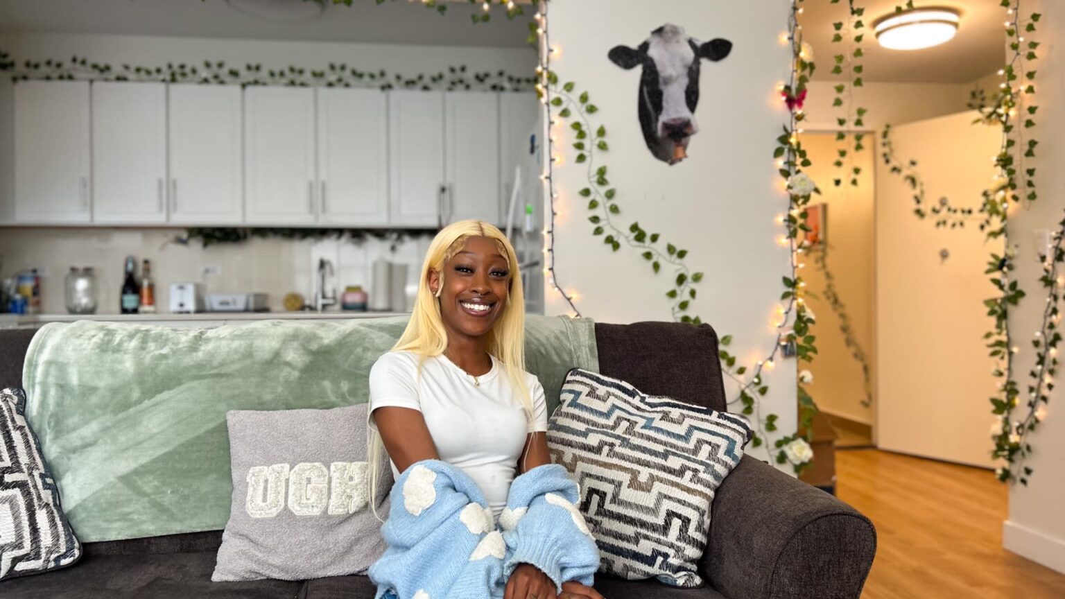 “My family never wants to leave now. My mom gets to see that I’m not struggling or scraping by to pay for my rent like so many people,” Olin says. “She knew how stressful it was for me to move out and find somewhere to live at my age and with my income. It just felt impossible, and she was super proud, and it made me even more proud of myself.”