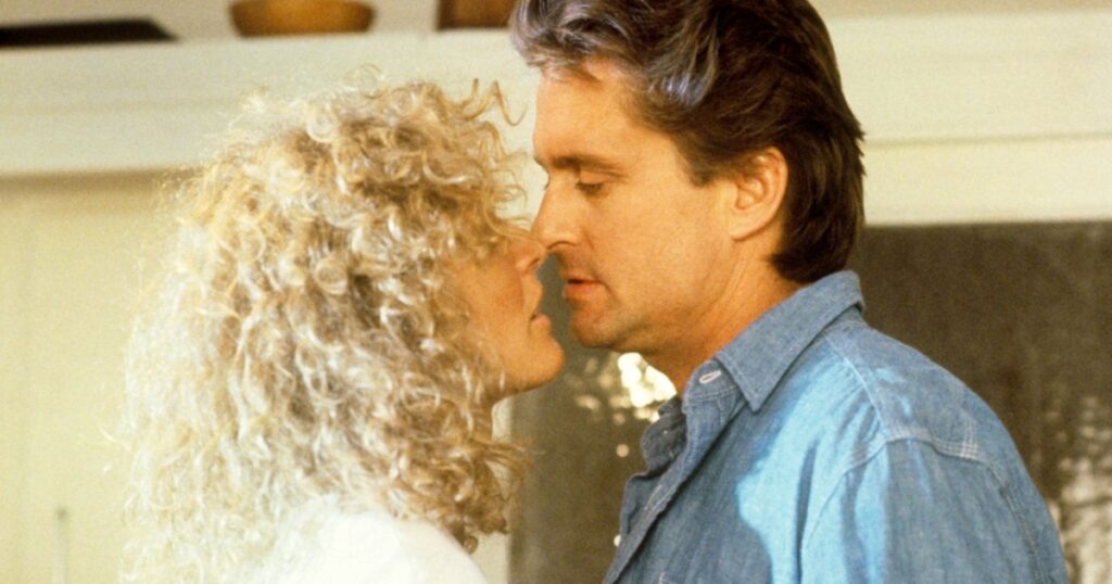 Michael Douglas was kind of the “erotic thriller leading man of the moment” in the ’90s, and in addition to Basic Instinct, he also starred in Fatal Attraction. The plot follows Douglas’ Dan Gallagher, a successful New York City lawyer in a loving marriage with his wife Beth (Anne Archer), and together they have one daughter, Ellen (Ellen Hamilton Latzen). But after a brief affair with a woman named Alex (Glenn Close), Dan finds himself the victim of Alex’s stalking. Feeling jilted after their one-night stand, Alex’s behavior becomes increasingly unstable, and Dan believes he and his family are in danger.