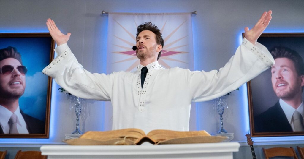 Honey O’Donahue (Margaret Qualley) is a small-town private investigator who gets wrapped up in a string of crimes that are all linked to a suspicious church. When Honey discovers a client that had just hired her has died in a car accident, she is led down a dark path involving the Four-Way Temple and its charismatic leader (Chris Evans), who is involved in dealings that are much less than holy.
