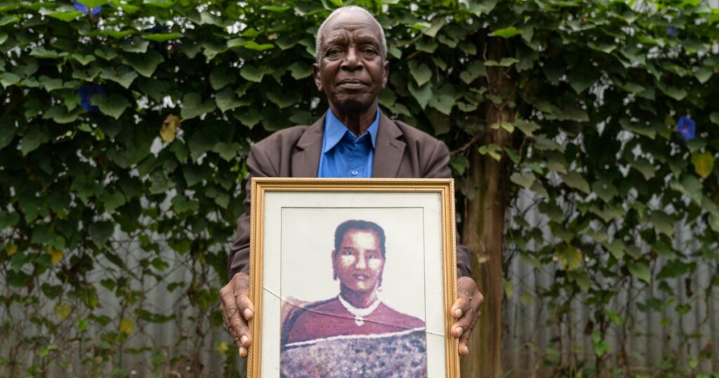 Cheruiyot Barsirian, 76, was just eight years old when he was detained with Manyei, his father, on Mfangano Island. “We were always sick from malaria because of the mosquitoes,” Cheruiyot recounted, cradling a portrait of a computer-generated image of what his grandfather Koitalel was believed to have looked like. “And there were so many snakes. I remember never being able to sleep because of the snakes and insects.”