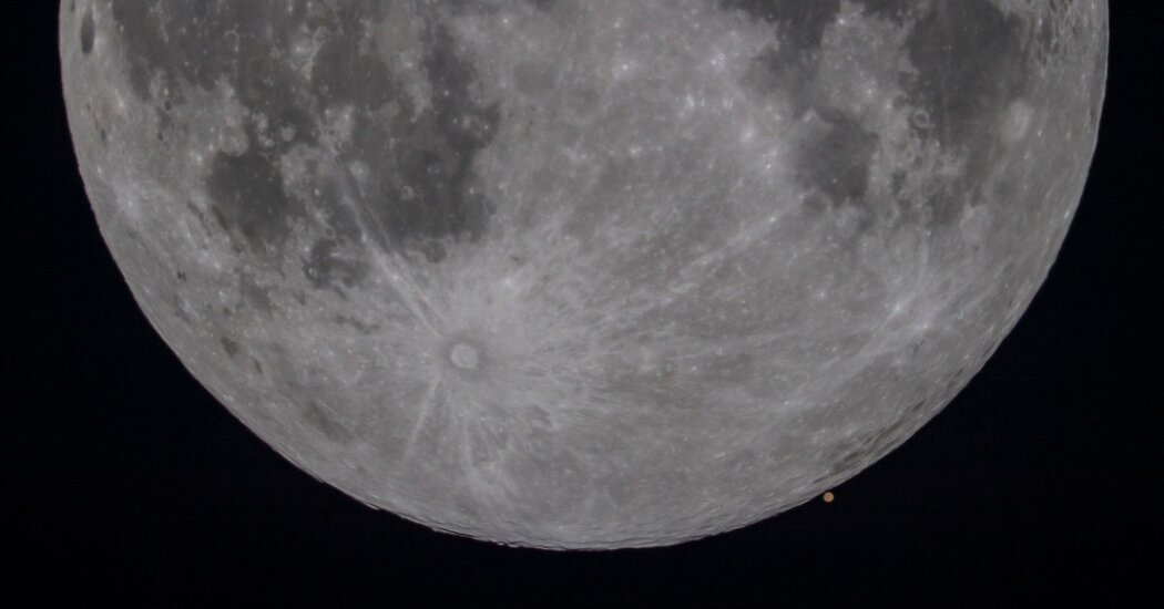 The first full moon of the year will glide through the sky on Monday night. For lucky stargazers in some parts of the world, it will also pass in front of the more-brilliantly-red-than-usual Mars in an event known as a lunar occultation.
