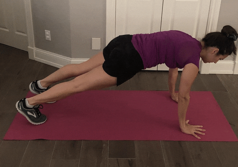 Begin in plank position, keeping your back straight, your hips low and your core engaged. Bring your right knee under your chest toward your right elbow. Return your right leg back to plank position; bring your left leg under your chest toward your left elbow. Repeat, alternating your legs and keeping a steady pace. Remember to breathe and concentrate on engaging your abs, glutes and hamstrings.