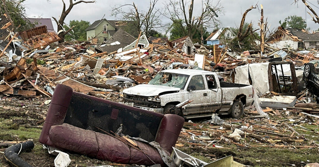 Residents of Iowa were surveying the damage on Wednesday morning after a wave of deadly storms swept across the state the night before, destroying much of one town and leaving the community bracing for a final death toll from at least one tornado and damaging winds.
