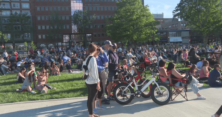 Hundreds of people gathered in Fredericton’s Officers’ Square on Friday night to watch the official re-opening of the space.