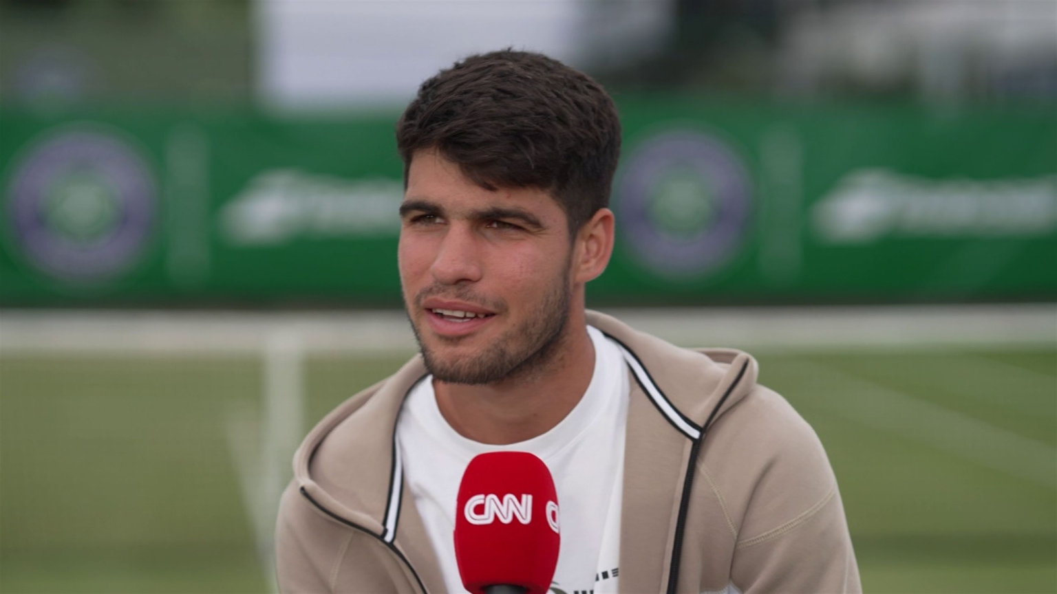 “Carlos Alcaraz looks ahead to his Wimbledon title defence and how he is aiming to be “one of the best in history” and at “the same table as the ‘Big Three’”. He is also asked about potentially facing Jannik Sinner in the semi-finals at SW19 (Credit: CNN).”