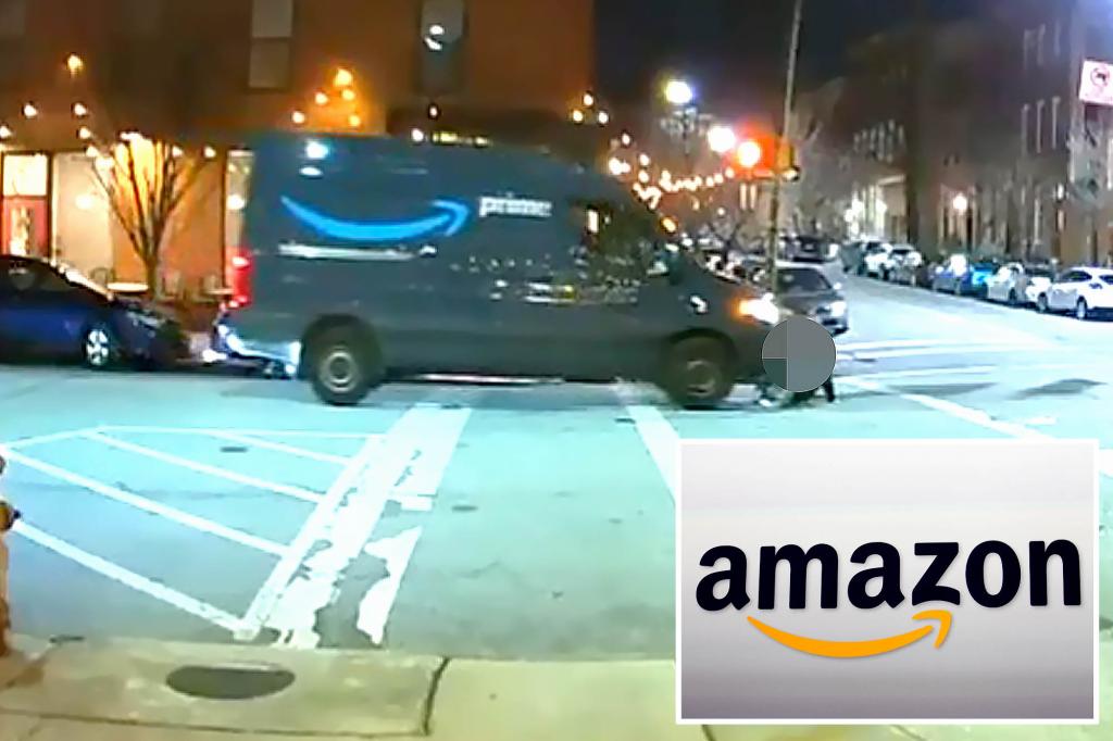 Disturbing security camera footage showed the horrific moment a 29-year-old woman was run over by an Amazon delivery van before the driver took off and left her motionless in the street.