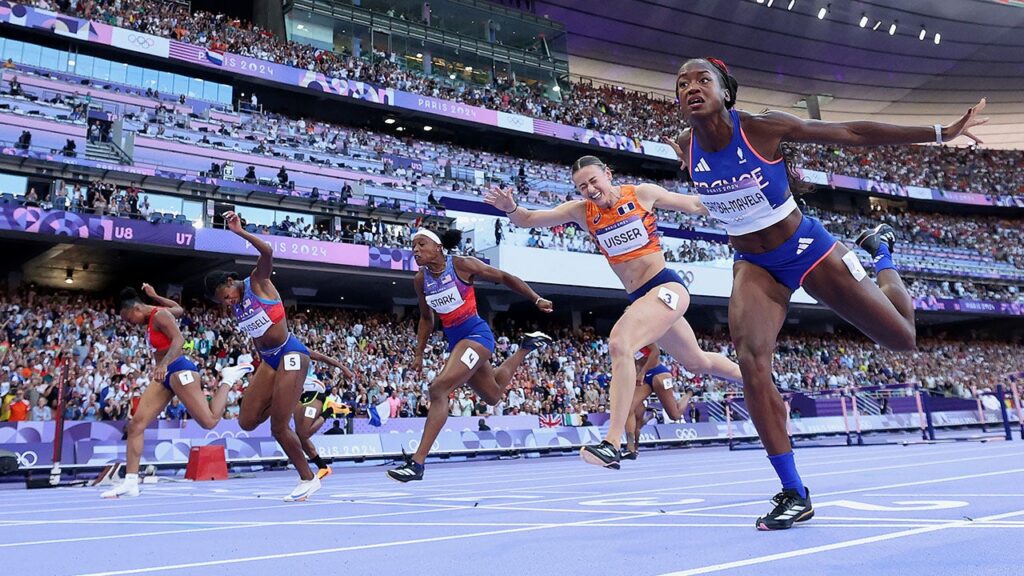 Masai Russell took a page out of Noah Lyles’ book on Saturday at the Paris Olympics and won the women’s 100-meter hurdles by a torso.