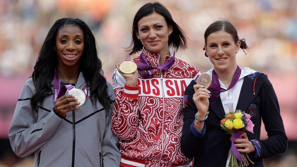 Lashinda Demus was awarded the silver medal after finishing in second place in the 400-meter hurdles at the 2012 London Olympics. She was .07 seconds behind Russia’s Natalya Antyukh.