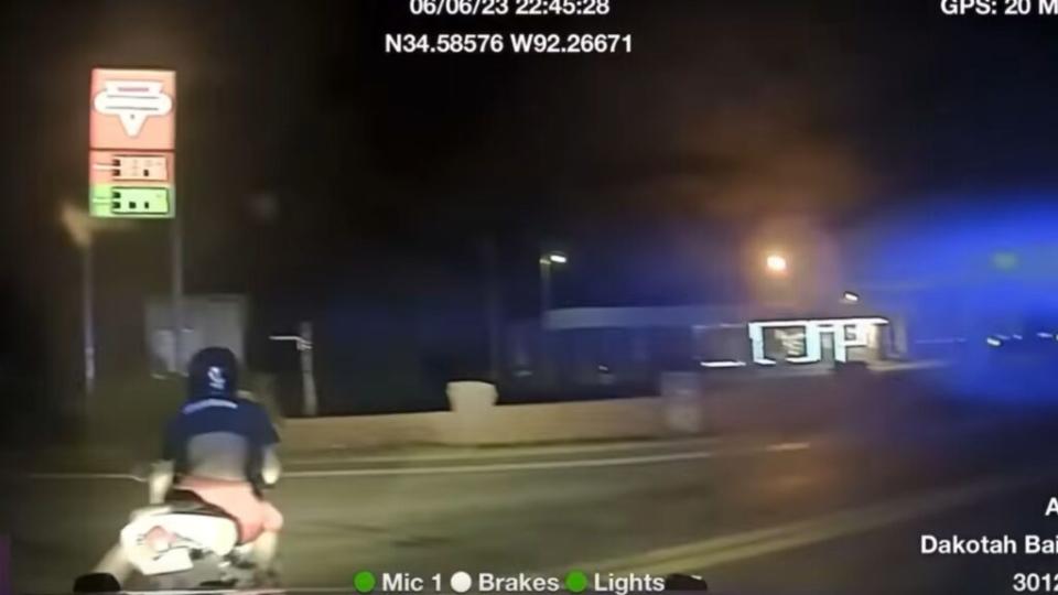 While sport bikes, or crotch rockets, can be genuinely fun to ride, they unfortunately seem to attract some of the biggest dorks on the road. There are other interesting vehicles which do the same, but it seems like pretty much everyone has been harassed by some young buck with a huge ego and undeveloped sense of his mortality while straddling one of these things. For that reason alone, it’s hilarious to watch an Arkansas State Police trooper give one a nice, firm tap after the suspect on it tries to get away.