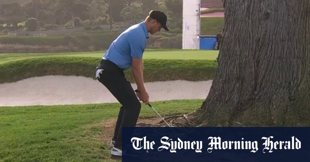 Australian golfer Cam Davis stuns the PGA Tour crowd and commentators with an insane shot off a tree root on the last hole.