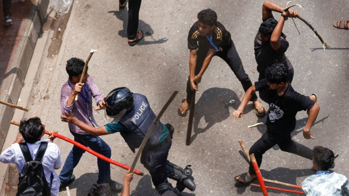 Police fired with rubber bullets at hundreds of protesters, who fought back and chased retreating officers to the headquarters of Bangladesh Television (BTV) in the capital Dhaka.