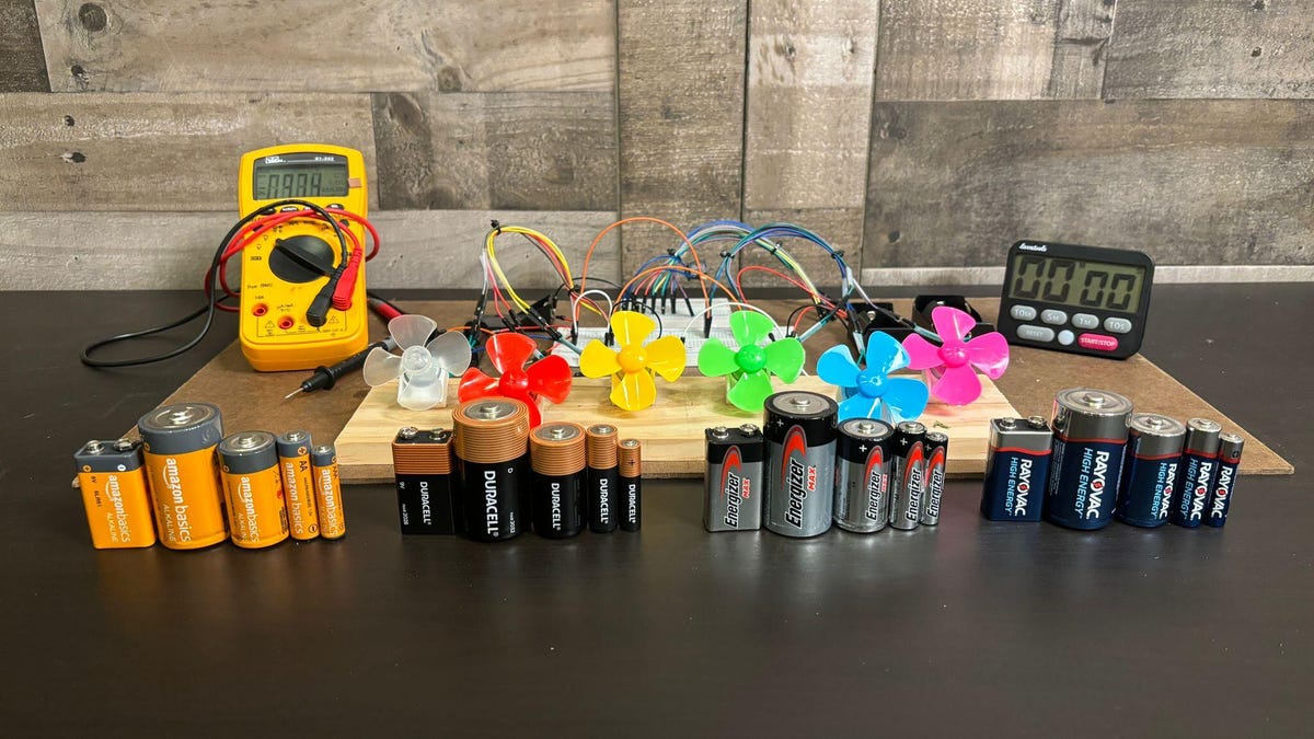 Having established the basics, we proceed to testing. First, we ensure to connect our multimeter probes in parallel and take an initial voltage reading. Then, we make sure our circuit arrangement is adequate for the type of battery under test and flip the switch to on. We start our timer and monitor the test, recording data readouts for voltage output under load every minute until the very last fan stops spinning. We run a “last man standing” competition. In our test logic, the battery that sustains the load arrangement the longest wins. The voltage drop allows us to see how efficiently the battery maintains a high voltage output given the test conditions. In this regard, the slower the drop in voltage, the better.