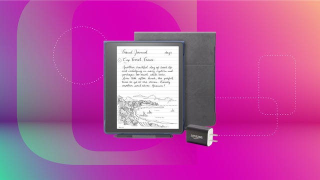 This bundle has a 64GB Kindle Scribe, a premium pen, a nice leather cover and a power adapter. You save a bit of money getting them all at once, and you’ll also not need anything else once you’ve got it either.