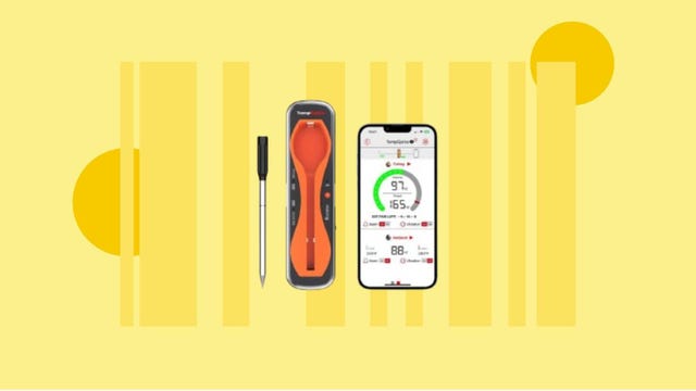 This ThermoPro smart meat thermometer has an impressive 500-foot Bluetooth range that lets you remotely monitor the internal temperature of your steaks, ribs or other meats, as well as the ambient temperature of your grill or smoker. It will even help you estimate cooking times to take the guesswork out of barbecuing. Plus, it’s dishwasher-safe for easy cleanup.Â