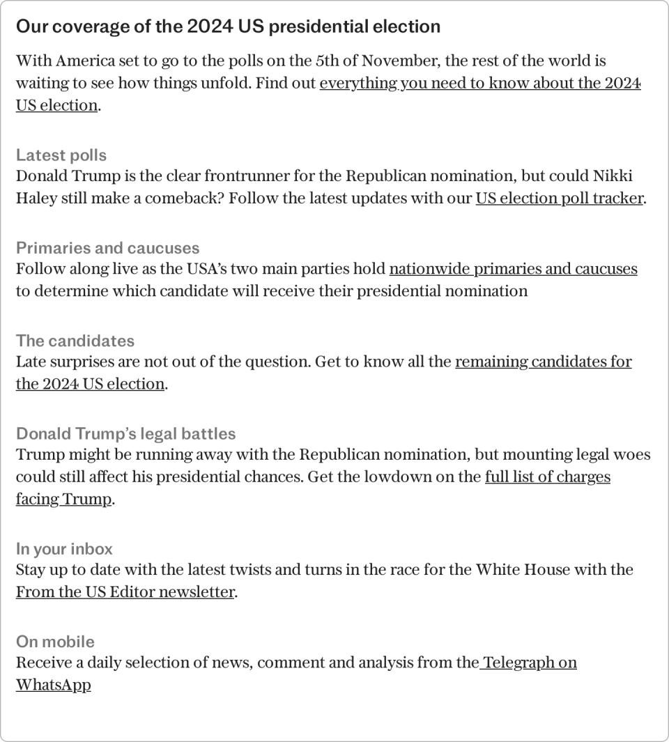 Broaden your horizons with award-winning British journalism. Try The Telegraph free for 3 months with unlimited access to our award-winning website, exclusive app, money-saving offers and more.