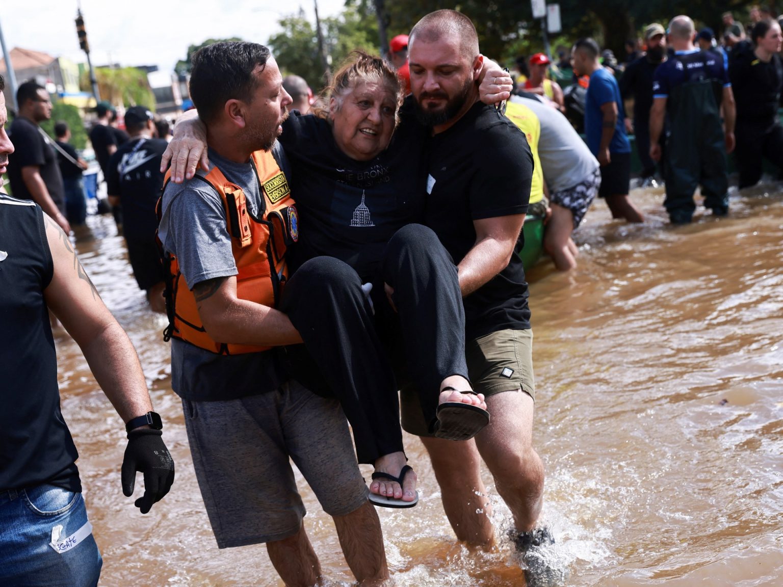 In Gasometro, a part of Porto Alegre popular with tourists, the water continued to rise on Wednesday, complicating rescue efforts.