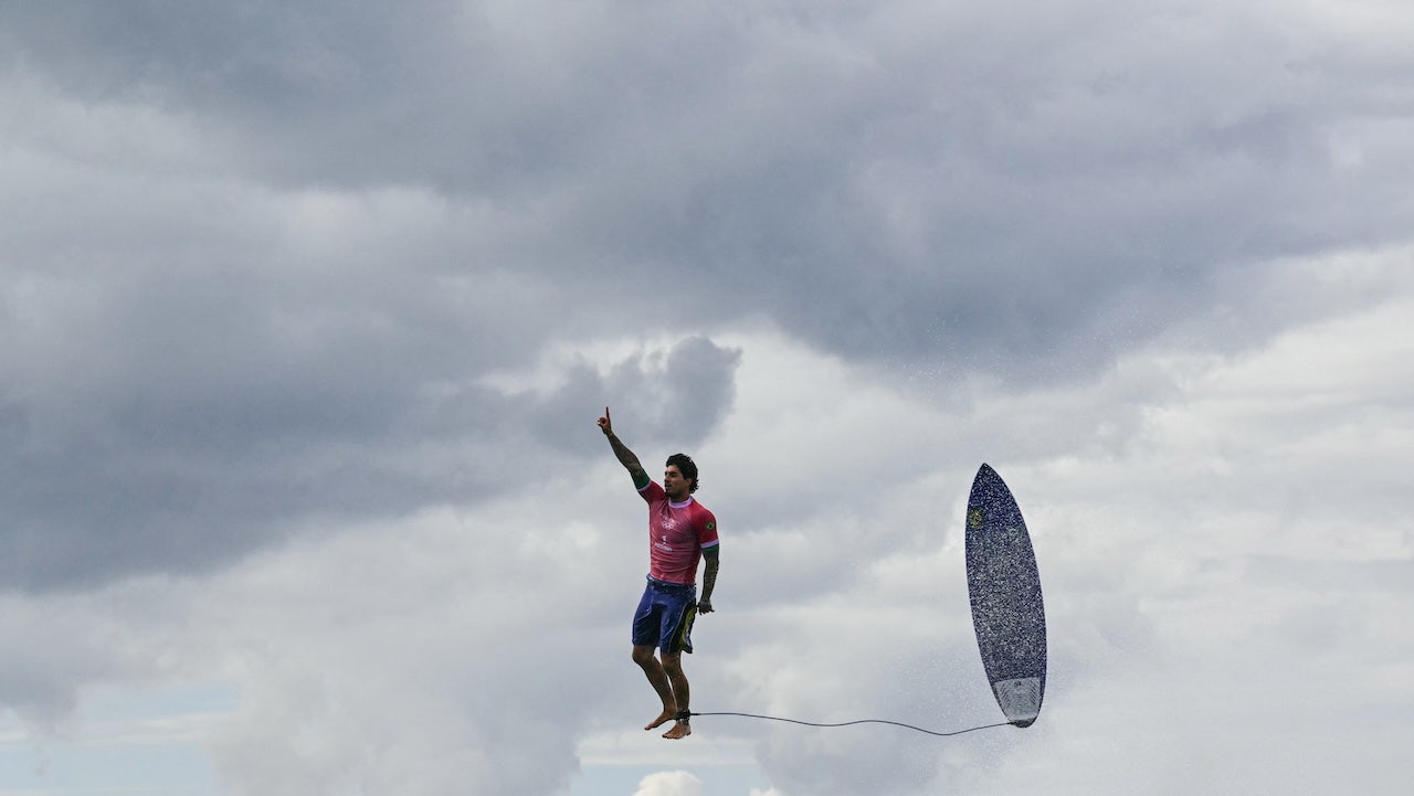 A photo of Brazilian surfer Gabriel Medina seemingly defying gravity and hovering above the ocean has already become one of the most viral images of the Paris Olympics.Â