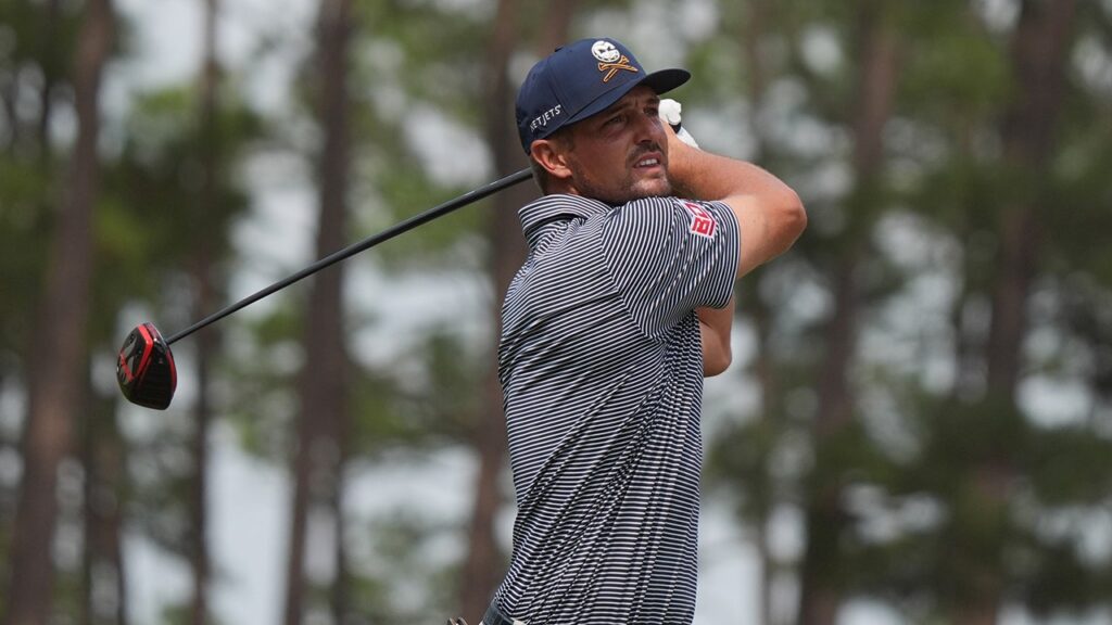 All week long DeChambeau was wearing a Stewart pin on the back of his hat, as it was the 25th anniversary of his iconic celebration after nailing an 18-foot birdie at Pinehurst No. 2 to win the U.S. Open. The course honored him with a special 18th hole flag with a silhouette of the fist pump-leg lift celebration.Â
