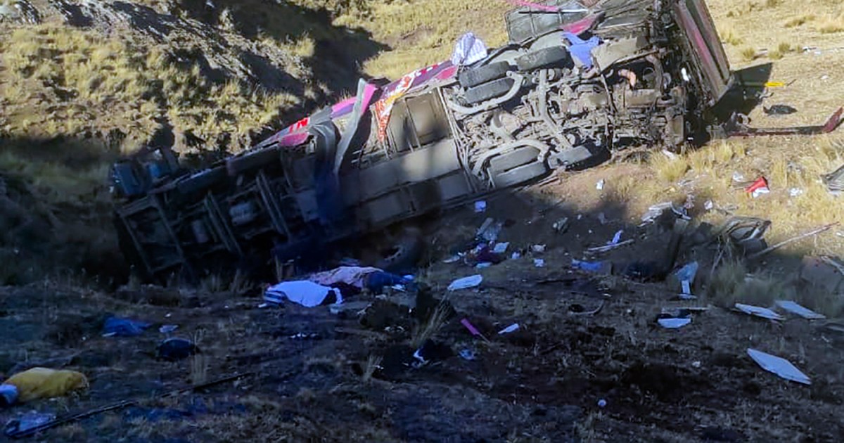 Photos shared by Peruvian news outlets and on social media showed a damaged bus lying on its side in a grassy area.