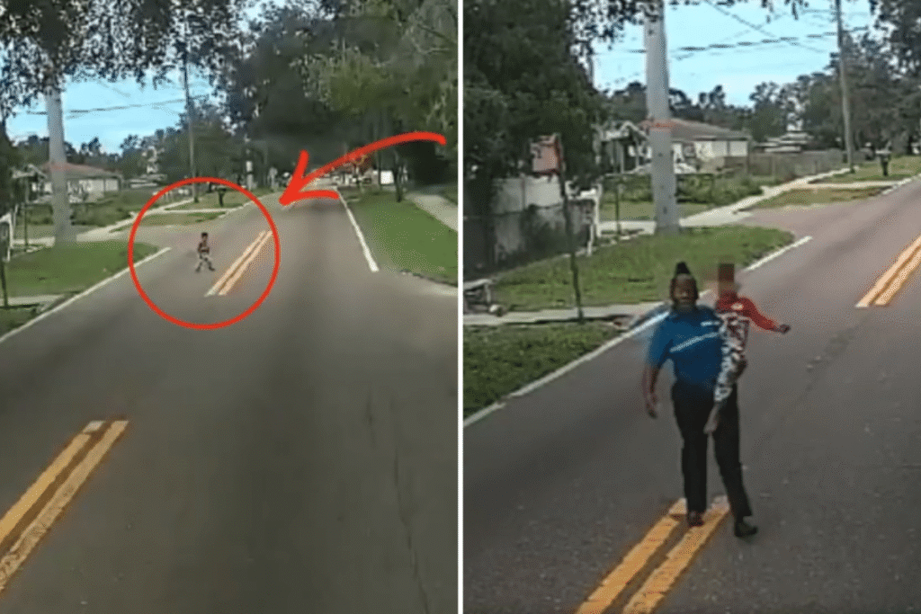 Barbara Baker, who was driving Route 12 in Florida, noticed the child walking in the roadway and immediately stopped her bus to intervene. Footage from inside the vehicle revealed the moment Baker rushed from her driver’s seat and ran down the street to reach the child who was still wearing pajamas.
