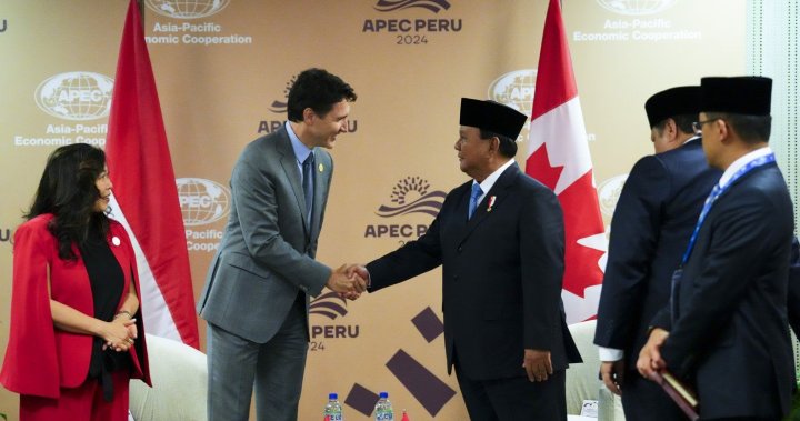 Prime Minister Justin Trudeau and Indonesian President Prabowo Subianto held a bilateral meeting on the sidelines of the Asia-Pacific Economic Cooperation summit in Lima on Friday, announcing the end of trade talks that should lead to Canada signing a new deal with the world’s fourth-most populous country next year.