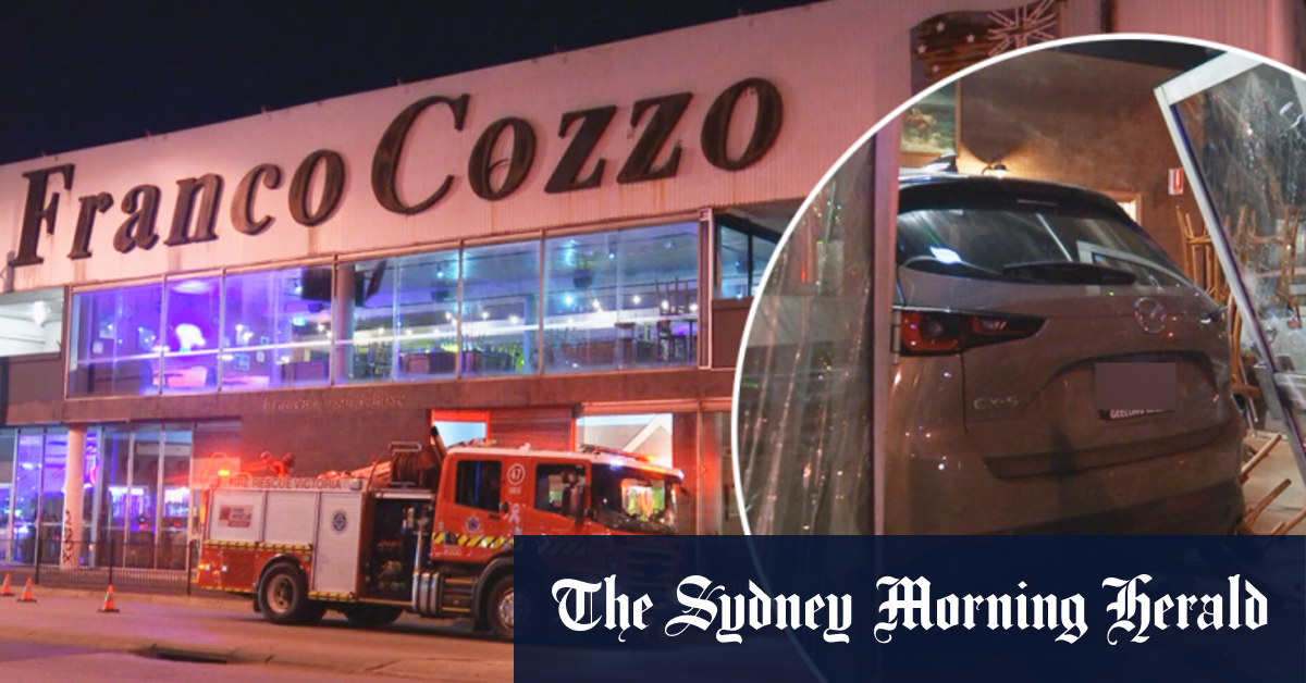 A car has smashed into the front of the former Franco Cozzo furniture store in Footscray.