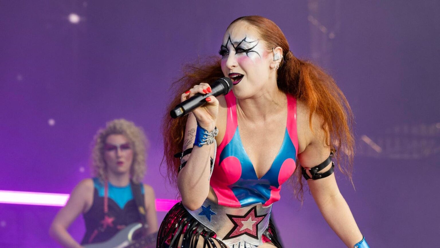 While her face paint conjured up the experimental mental image of David Bowie, Roan’s Lollapalooza set embraced a pro wrestling theme, with a ring present on stage as the star emerged in a pink and blue luchador mask, owning the runway as she headed south through Hutchinson Field into the massive throng, one which aerial photos have revealed stretched from the festival’s south main stage through Grant Park and across Balbo Avenue toward the city’s iconic Buckingham Fountain, nearly a mile long stretch.