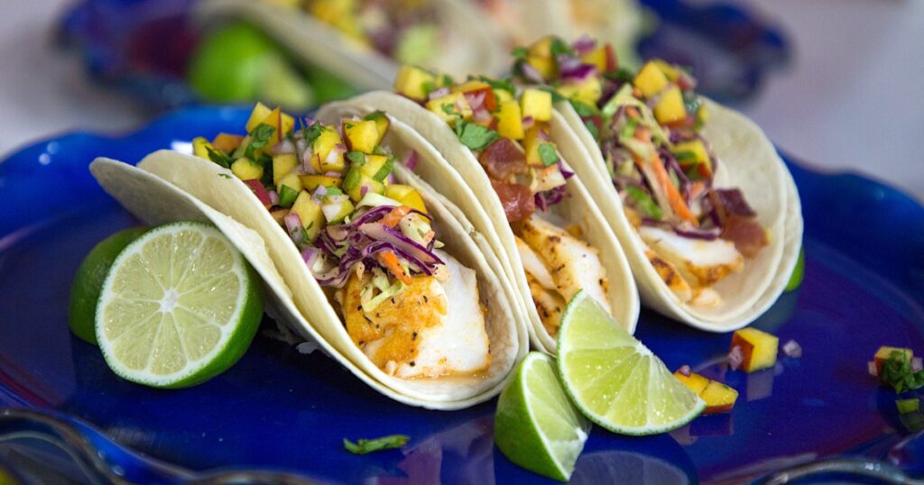 Is there anything more summery than fish tacos with peach salsa? This recipe is surprisingly easy to make, and it’ll help you meet your 2x/week fish recommendation. White fish is rich in protein and healthy fats, nutrients that contribute to muscle growth and appetite control.Â