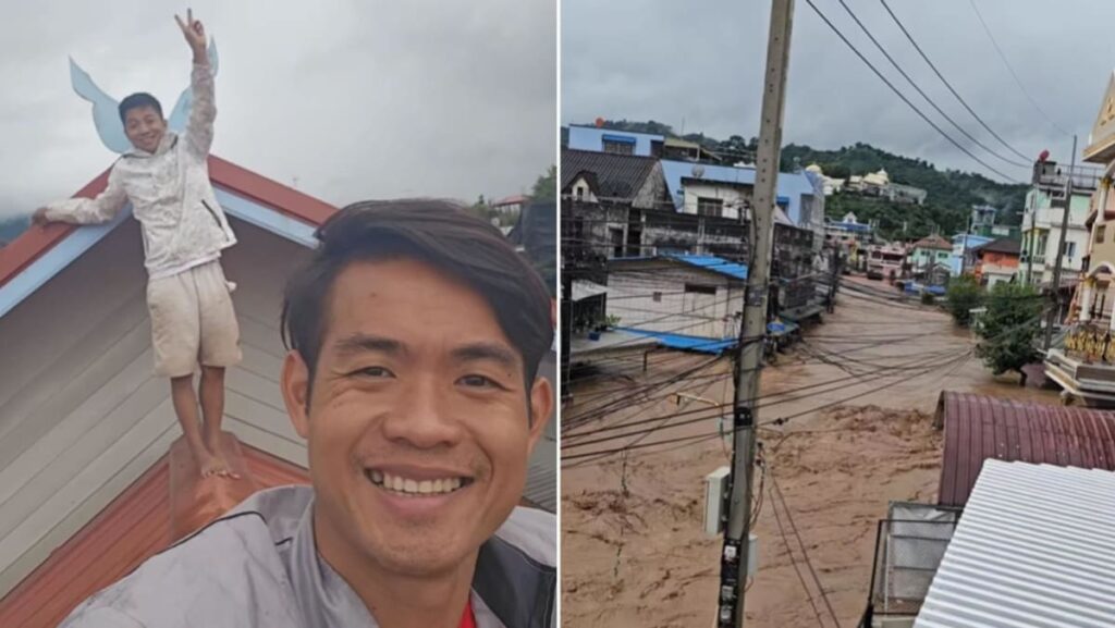 The waters have gone down, allowing Ekkapol to reach the ground floor of the house, but they cannot leave because the current outside is still too strong, he said.