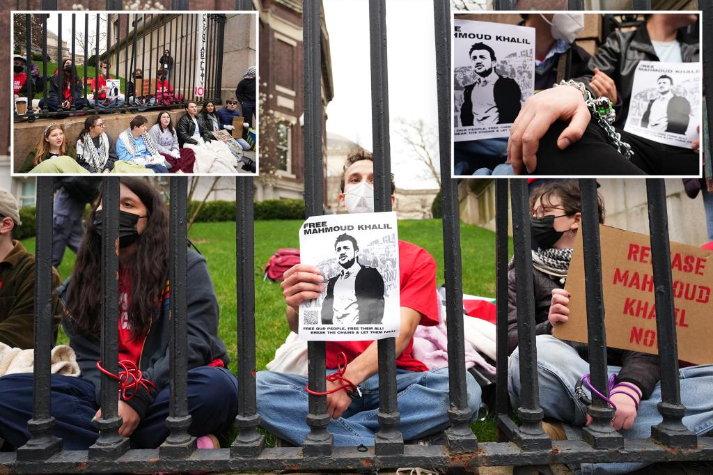 Several Columbia University students have chained themselves to a gate to protest Mahmoud Khalil’s detention by Immigration and Customs Enforcement (ICE).