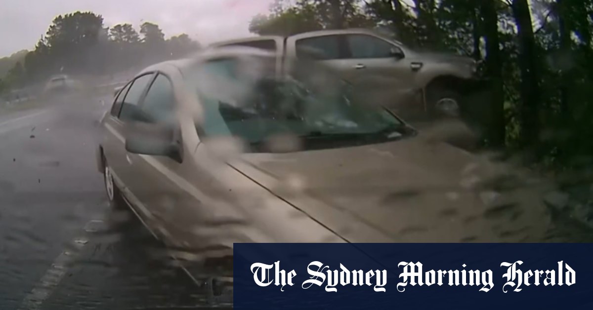 Two people have escaped with their lives after jumping out of the way of an out-of-control ute before it slammed into cars on Melbourne’s Western Freeway.