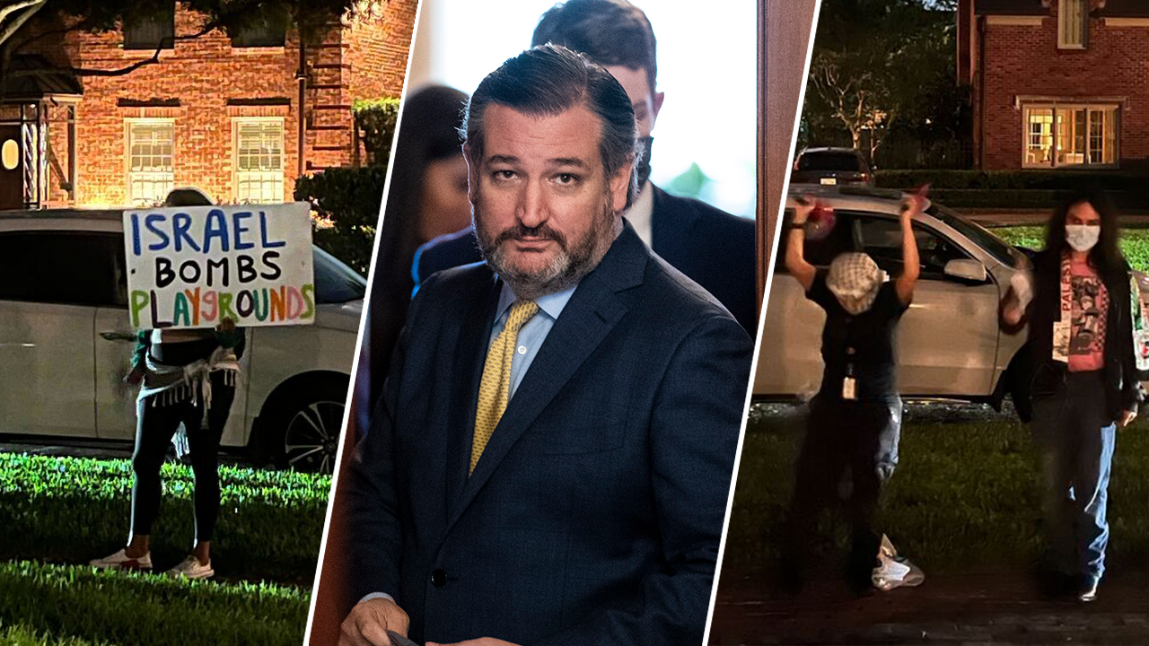 Photos and video show about a dozen protesters outside Cruz’s home Friday chanting and clapping while holding signs such as “Cease Fire Now,” “No rest for the wicked, Ted” and “Israel bombs playgrounds.” The protesters were also seen ringing bells as they chanted and wore masks. Â