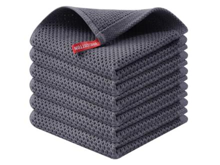 If your ratty old dish towels have seen better days, this 100% cotton set is an excellent swap. The waffle weave pattern not only looks nice, but it also offers a bit of texture for more effective scrubbing.Â