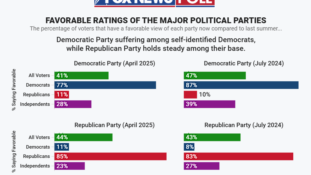 The figures were reversed last summer, when Fox News last asked the party favorability question in one of its surveys.