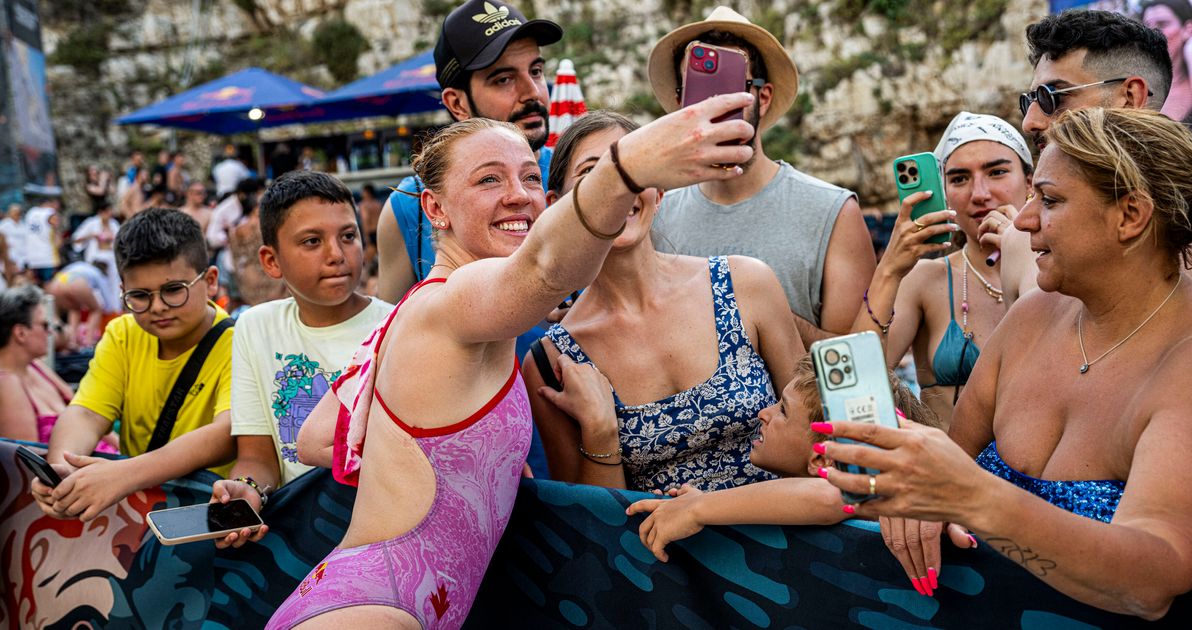 Carlson, a TikTok star and a diver currently second in the Red Bull Cliff Diving World Series, recently re-enacted some Olympic sports as if they took place on a high dive.