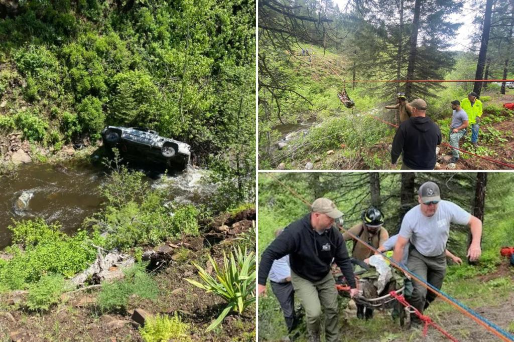 “Sheriff Ash arrived and located the vehicle, along with a dog, in the steep, brushy ravine. As he was looking for an access point to the creek, he heard a subject yell for help,” the Baker County sheriff’s office said.
