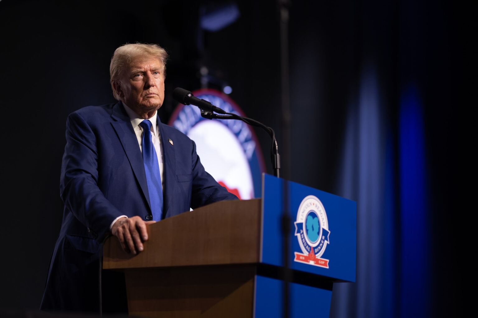 A clip of the moment was posted by the X, formerly Twitter, account Biden-Harris HQ, which is associated with President Joe Biden’s reelection campaign. In the footage, Trump leans on his podium and tips toward the left while addressing his supporters, moving the dais with him.