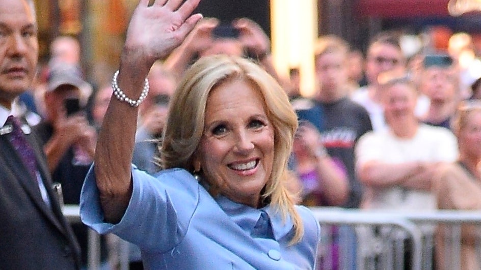 It’s no surprise that Biden has leaned into blue lately (she’s worn it in a variety of shades for all but one public appearance this month). As the 2024 Presidential election is within sight, it makes sense that the First Lady is dressing in the color of the Democratic Party. Rewearing outfits is another shrewd, politically loaded choice, positioning her as a woman of the people who actually wears her clothes, and an environmentally conscious one at that.