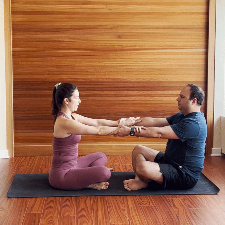 By practicing yoga together, couples can improve their communication skills, connect on a deeper level, both physically and emotionally, and build trust.Â