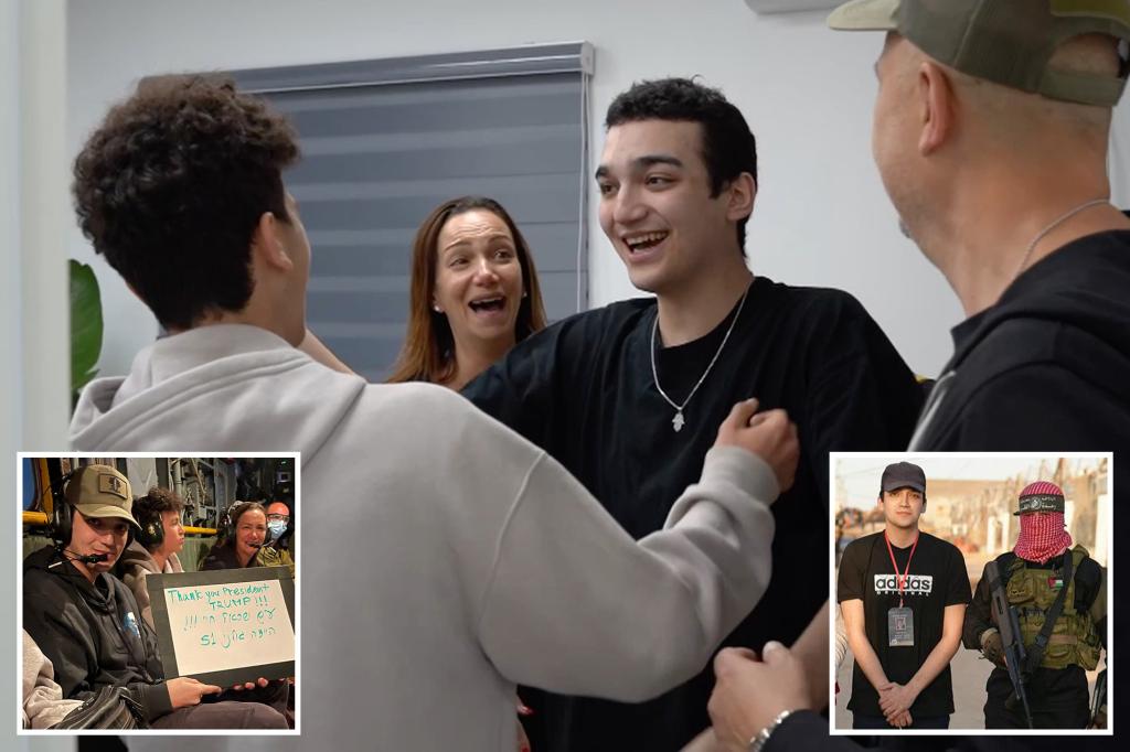 Newly freed hostage Edan Alexander hugged his mother and family members as they were finally reunited after more than 19 grueling months — with the 21–year-old holding a sign reading “Thank you President Trump” after the American leader helped facilitate his release.