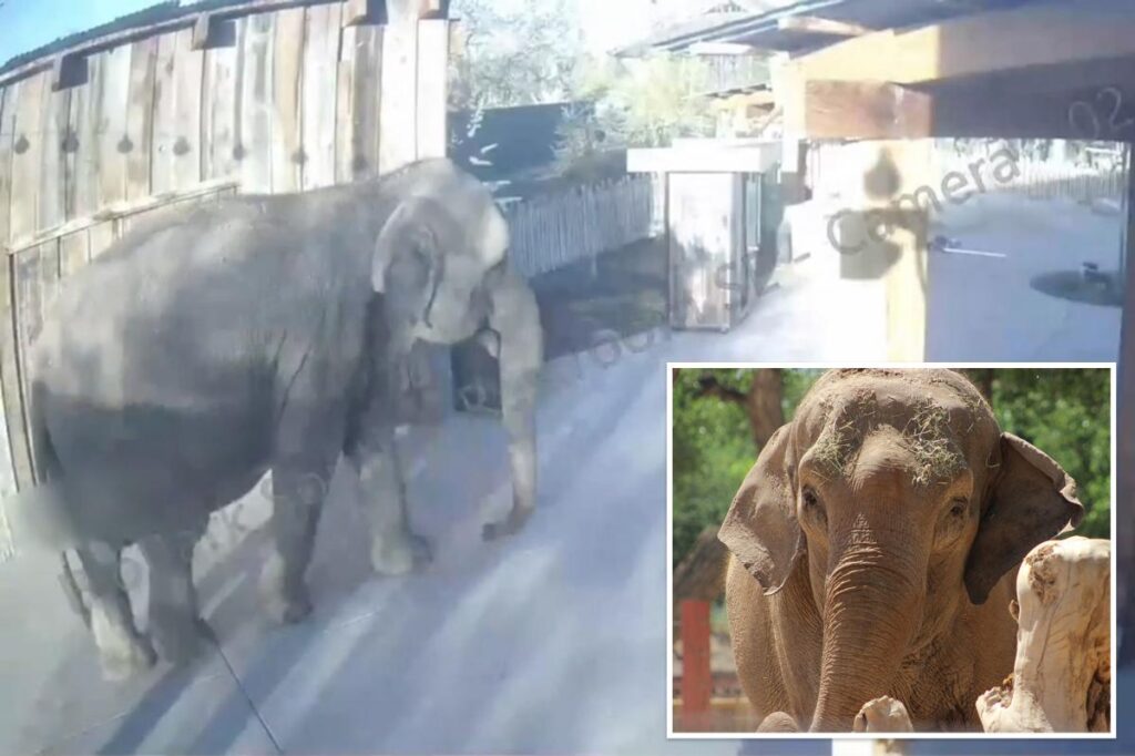 A 52-year-old Asian elephant at Albuquerque’s ABQ BioPark Zoo busted through steel fencing early Sunday morning and went for a stroll along the visitor walkways, snacking on plants and trees before anyone could stop her.
