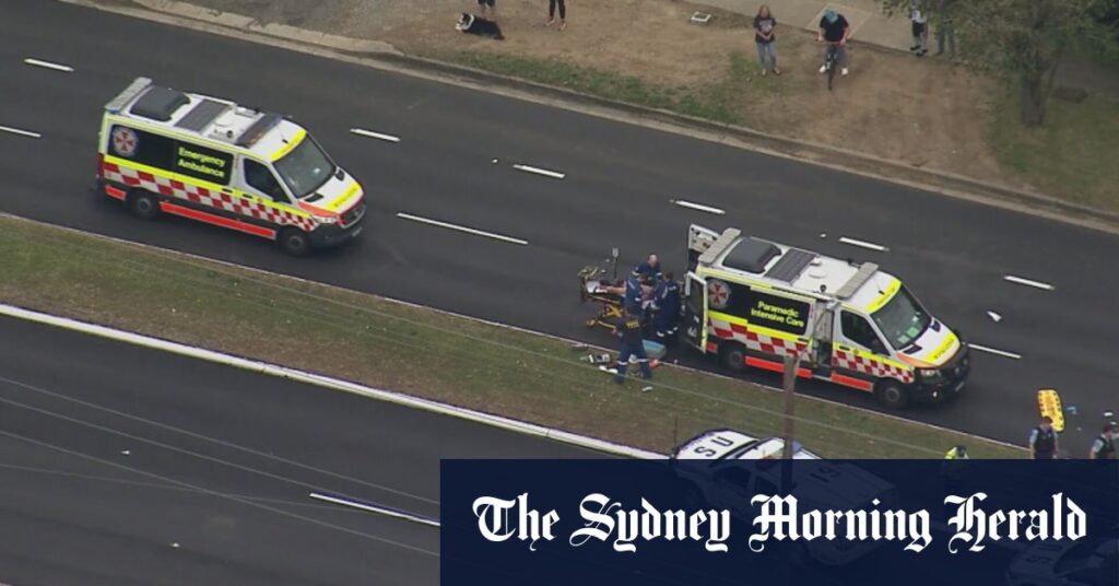 A stabbing spree in southern Sydney has forced police to close roads, including the Princes Highway around Engadine, after they Tasered a suspect allegedly found running from the scene of a car crash where multiple people, including a police officer, were injured.