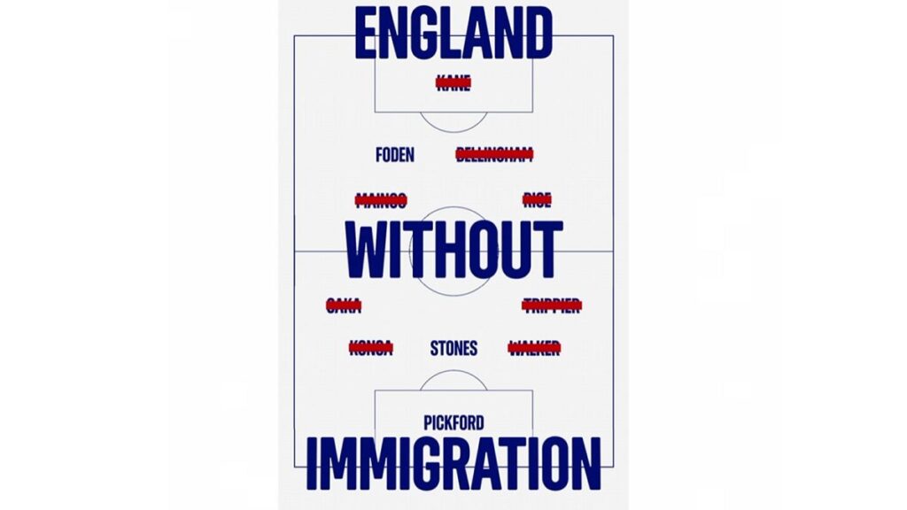 71% of English players fielded in England’s semifinal win over the Netherlands were born abroad or have at least one parent or grandparent born outside the UK.