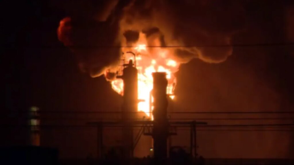 Flames and smoke at Chevron oil refinery in Los Angeles County, California