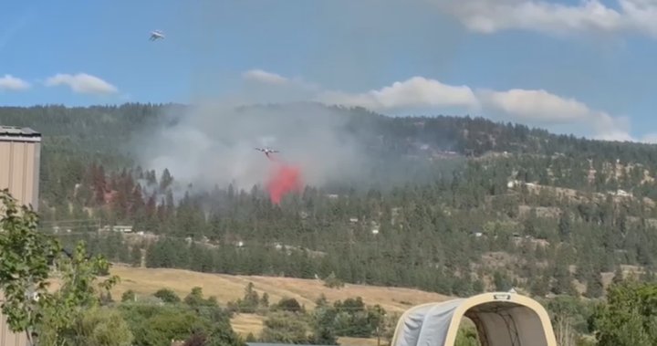 RCMP say the blaze is burning uphill toward Postill Lake, which is northeast of Kelowna, and toward several other nearby lakes that have cabins and campsites.