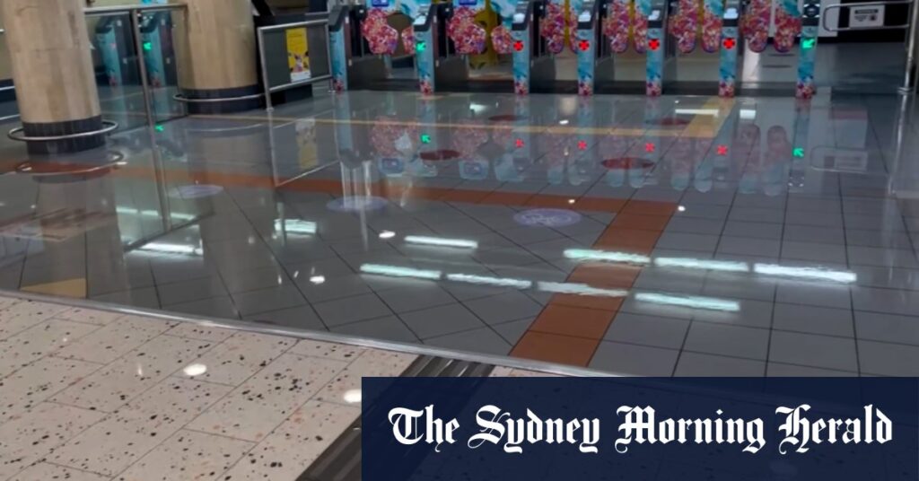 Flooding at Roma Street station in Brisbane’s CBD