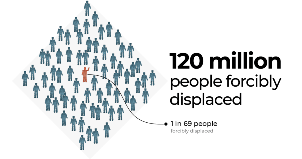 Of the 117.3 million forcibly displaced, 68.3 million are internally displaced within their own countries due to conflict or other crises, such as Gaza where the UN estimates about 75 percent of the population, or more than 1.7 million people have been displaced by Israel’s continuing assault.